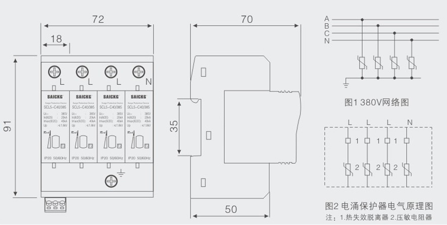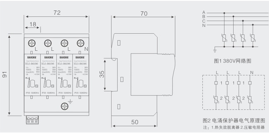 .安装在LPZ1或LPZ2区与LPZ3区交界处,采用35mm的标准导轨安装,连接铜质多股导线为2.5~ 16mm2。