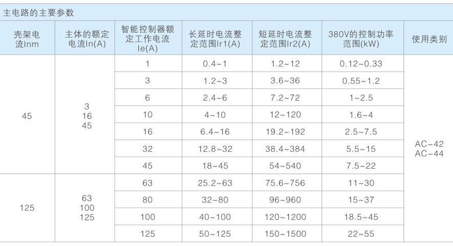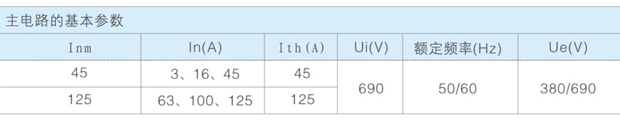 . 主体额定电流In: 45A、 125A。