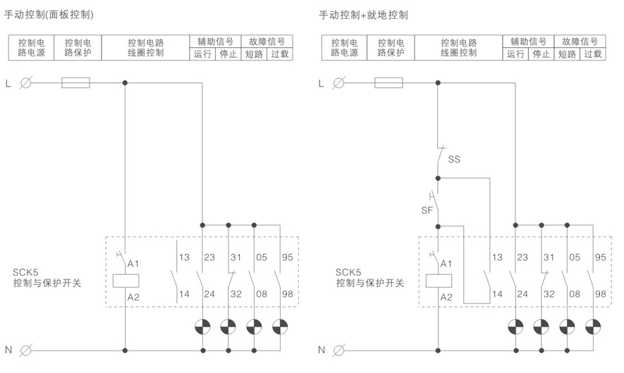 CPS即“控制与保护开关电器”是低压电器中的新型产品,是国际通用的“控制与保护开关电器”的产品类别代号,作为新的大类产品,其产品类别代号为“CPS" (Control and Protective Switching Devices)。SCK5系列控制与保护开关电器是在单一结构形式的产品上实现集成化的、内部协调配合的控制与保护功能,能够替代断路器(熔断器)、接触器、起动器、隔离器、热继电器、过载(或过流、断相)保护继电器、电机综合保护器、智能漏电继电器等多种传统的分离元器件,具有远距离自动控制与就地人力控制兼有的方式进行控制操作的功能,具有协调配合的时间-电流保护特性,具有控制与保护自配合、短路后连续运行,具有分断能力高,飞弧距离小、寿命长,具有保护整定电流均可调的特性,操作方便、配套附件模块多样齐全等优点,可以实现对电动机负载、配电负载的控制和保护。