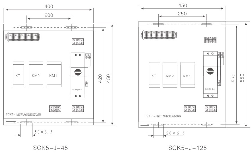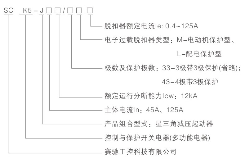 以数字化产品SCK5作为主开关,采用模块化的结构型式,集成熔断器、断路器、接触器、起动器、隔离器、热继电器、过载(或过流、断相)保护继电器、电机综合保护器、智能漏电继电器等低压电器产品功能于一体,与适当的可逆型接触器、时间继电器及其他必需的附件、通过电气联锁构成新型保护式星三角(Y-O)减压起动器、SCK5-J或SCK5-J2、自藕减压起动器SCK5-Z、电阻减压起动器SCK5-R,实现集成化的、内部协调配合的减压起动自动控制与各种保护功能,适用于功率55kW以下电动机的减压起动控制与保护。具有面板指示及机电信号报警辅助触头模块。选配的可逆型接触器产品内部均带有机械联锁和电气联锁等附件,提高了运行可靠性。产品根据需要安装电气联锁,具有可靠性高、分断能力高、寿命指标高,体积小、安装面积小、安装维护工作量小等优点。