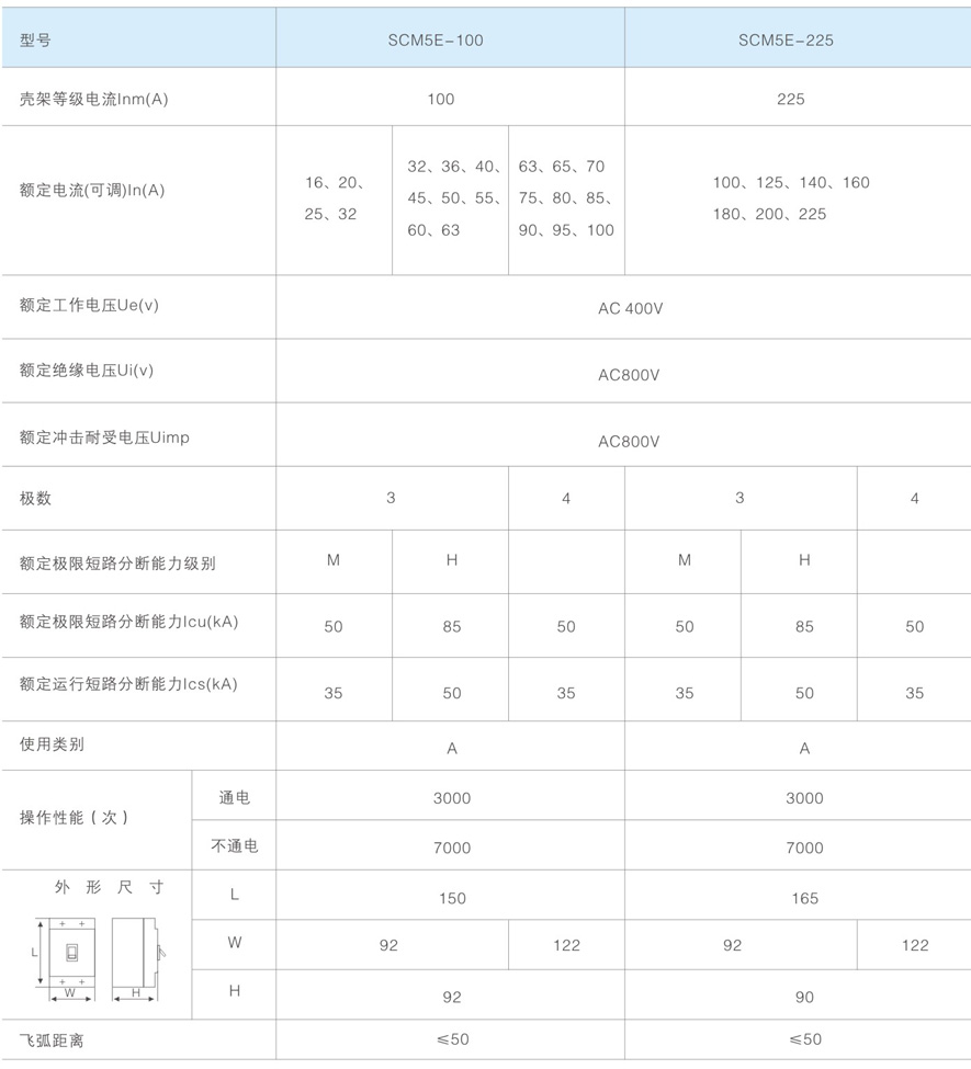 SCM5E-225为225( 100, 125, 140, 160, 180,200,225);