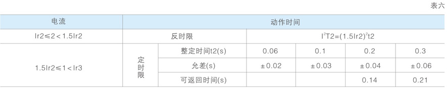 长延时过电流保护反时限动作特性见表五