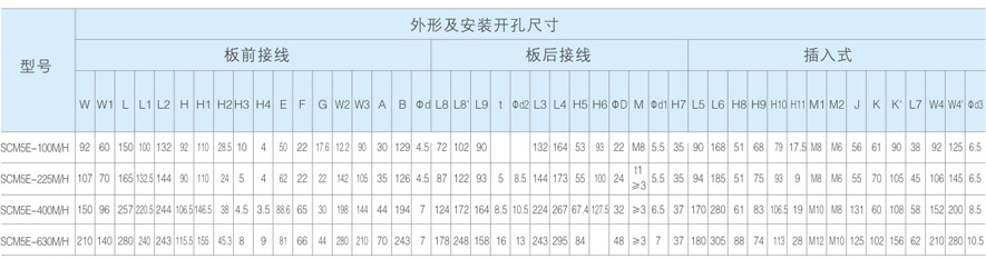 .外形尺寸与SCM5E系列塑壳断路器同规格相同,安装据有互换性。(注:其中SCM5E- 800相同)