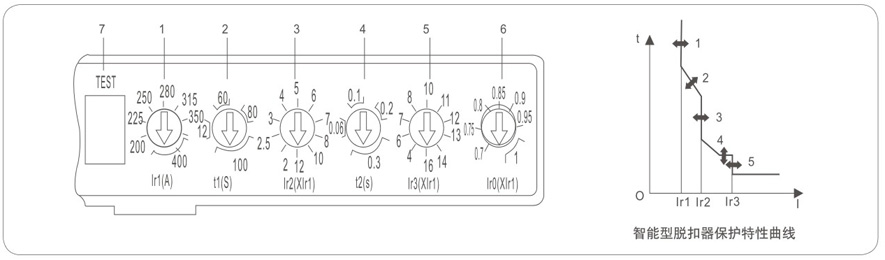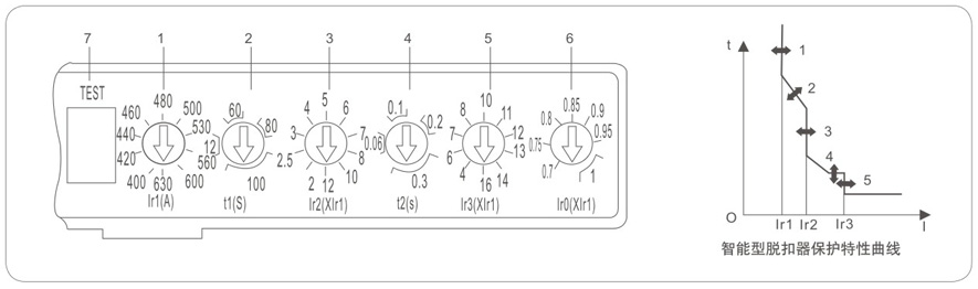 具有载长延时反时限,短路短延时反时限,短路短延时定时限,短路瞬时动作等保护功能,可由用户自行设定组成所需的保护特性。