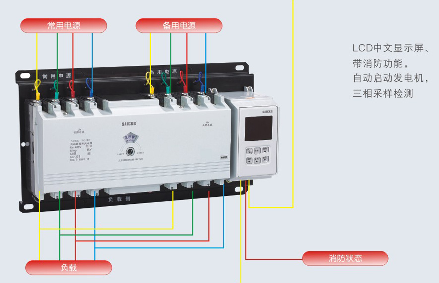具有短路、过载保护功能,过压欠压、缺相自动切换功能与智能报警功能;