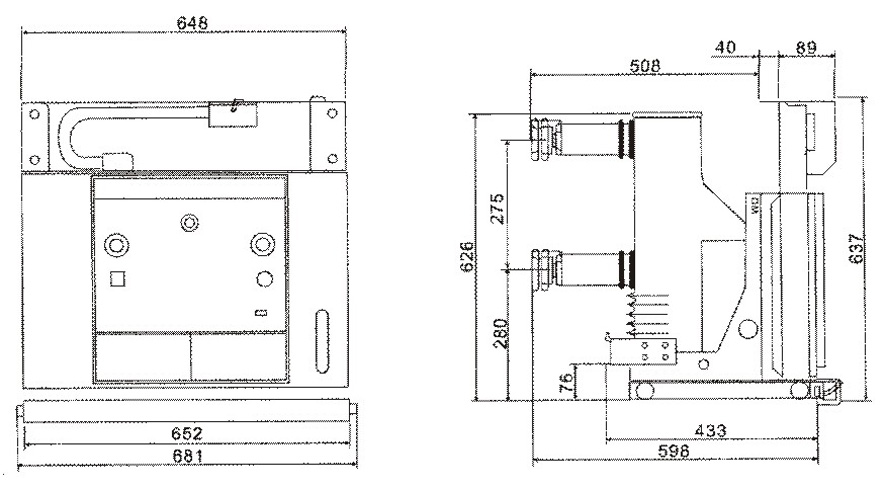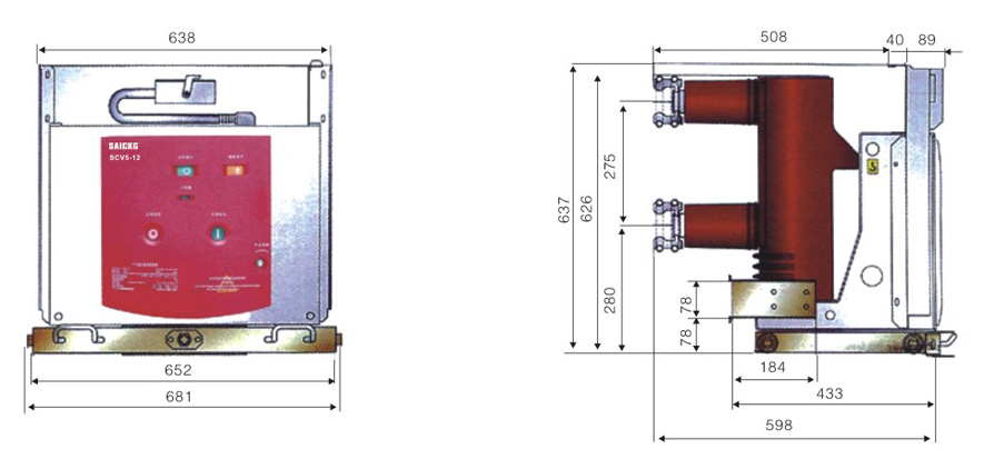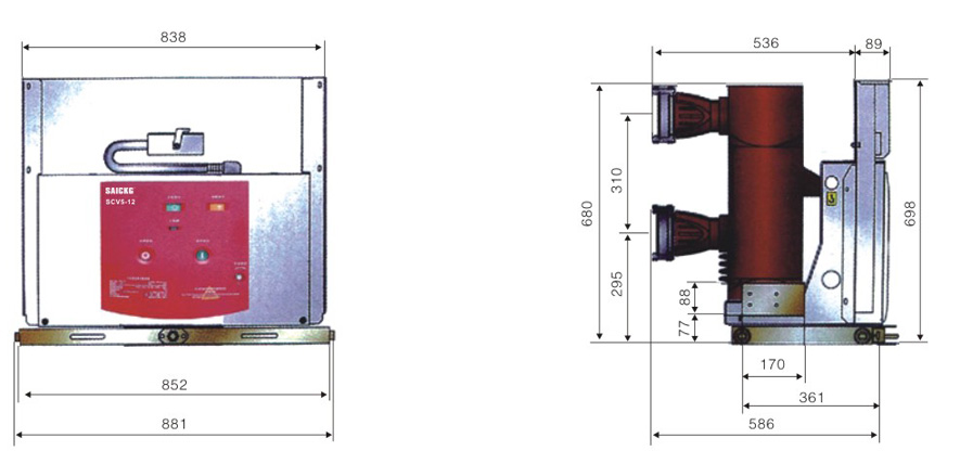 SCV5-12G手车式户内真空断路器外形尺寸: