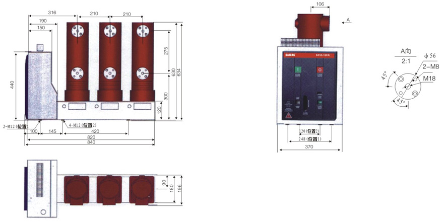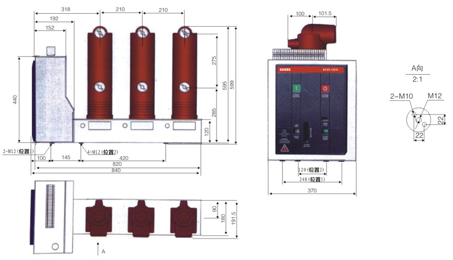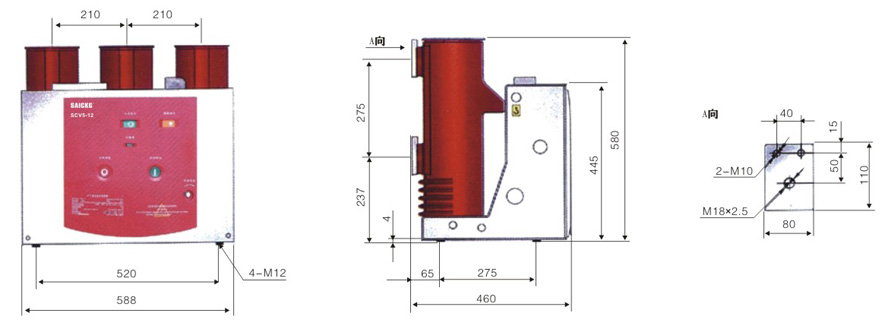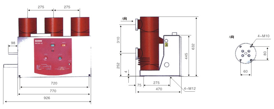 (SCV5-12CG(B型)侧装式户 内真空断路器(固定式)外形尺寸