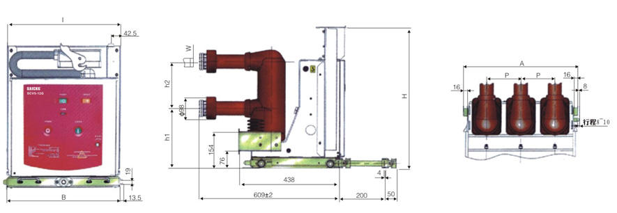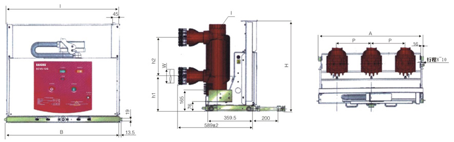 SCV5-1 2手车式(相间距275)户内真空断路器外形尺寸