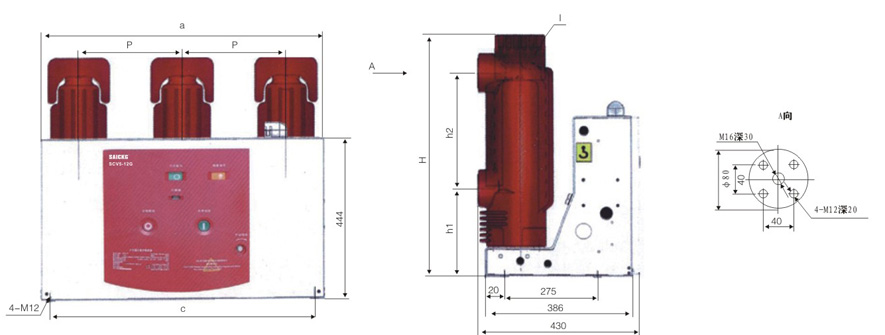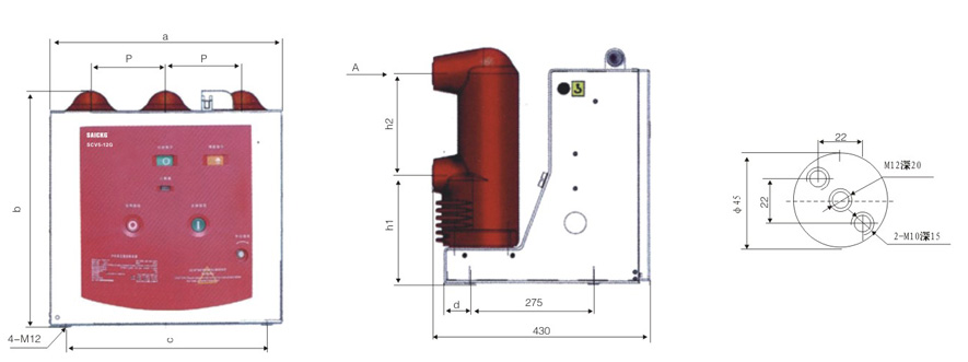 SCV5-12G固定式户内真空断路器外形尺寸:
