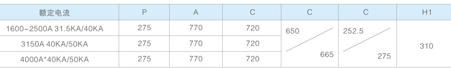 - 额定电流2500A以上时断路器须带冷却罩;