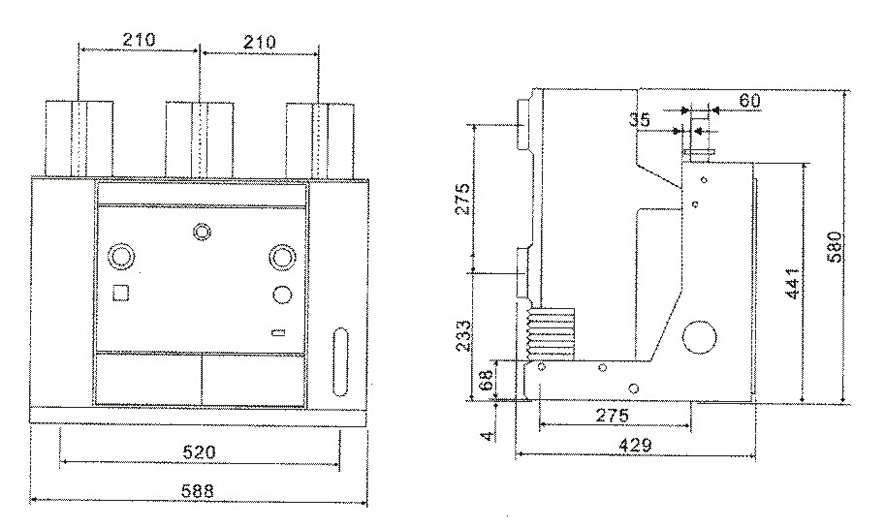 手车式SCV5-12YG外形及安装尺寸图: