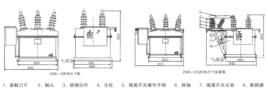 ZW8-12G是由ZW8- 12断路器与隔离刀组合而成的,称为组合断路器,可作为分段开关使用。