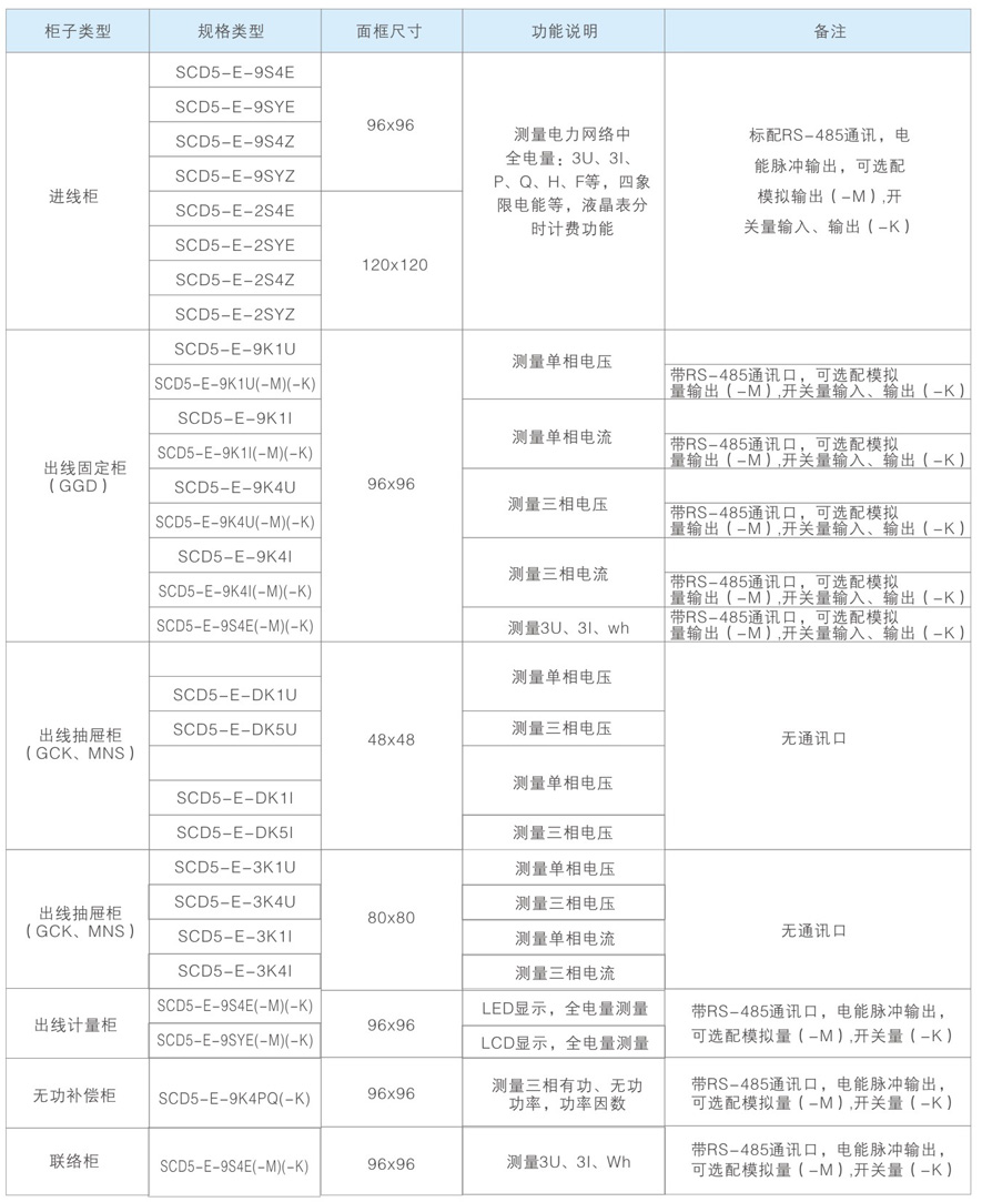 SCD5-E系列多功能电力仪表是一种具有可编程、测量、显示、数字通讯和电能脉冲、变送输出等功能和电力仪表。能够完成电量测量、电能计量、数据显示、采集及传输,可广泛应用于变电站自动化,配电自动化,智能建筑,企业内部电能测量、管理、考核。