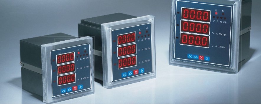 特点:测量三相电压、三相电流、功率因数、频率、电度等.